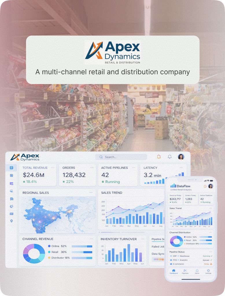 A multi-channel retail and distribution company operating across several regions, managing data from ERP, CRM, POS, and e-commerce platforms for operational and financial reporting.