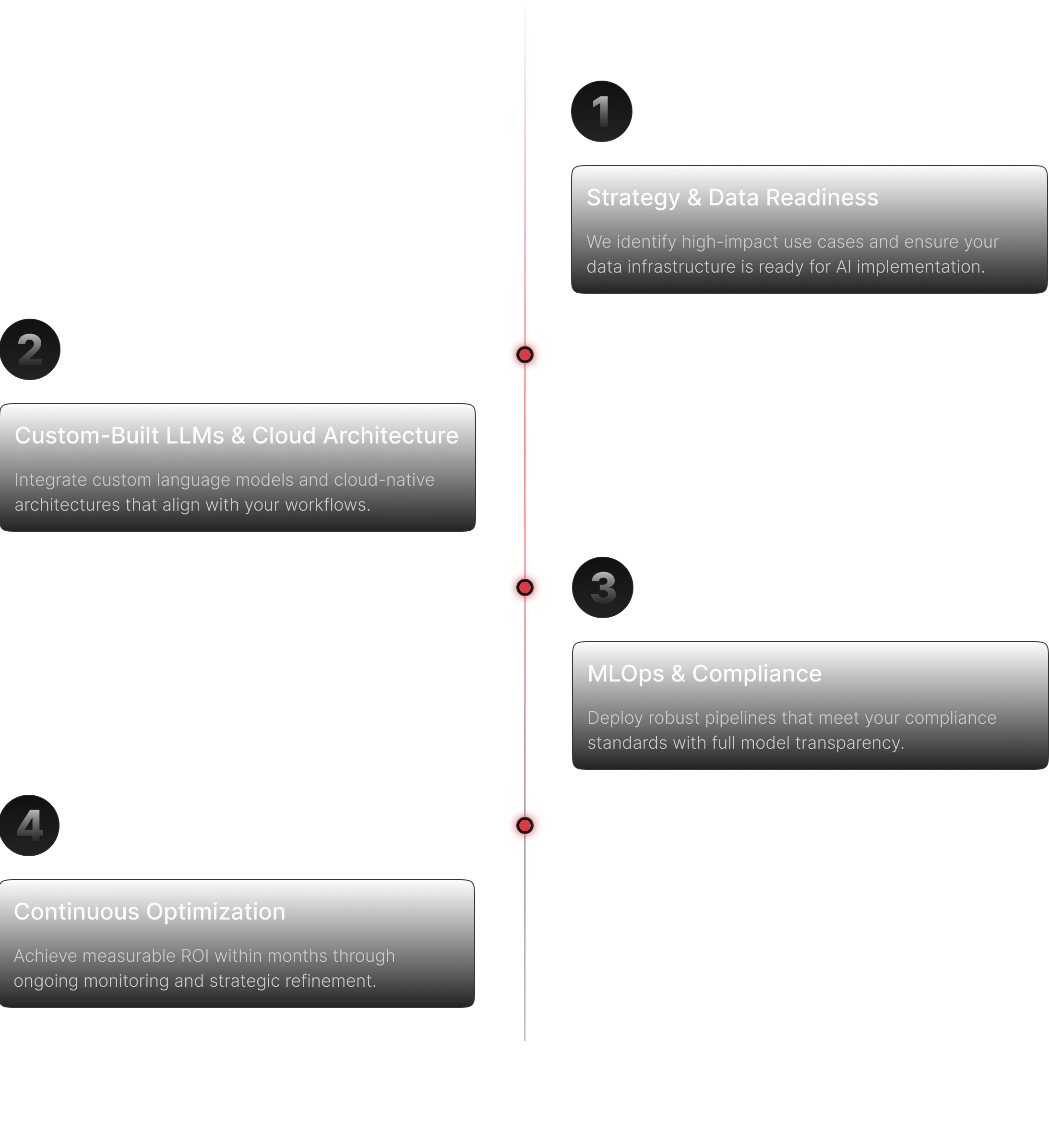End-to-end delivery from AI strategy to deployment and continuous optimization for long-term success.